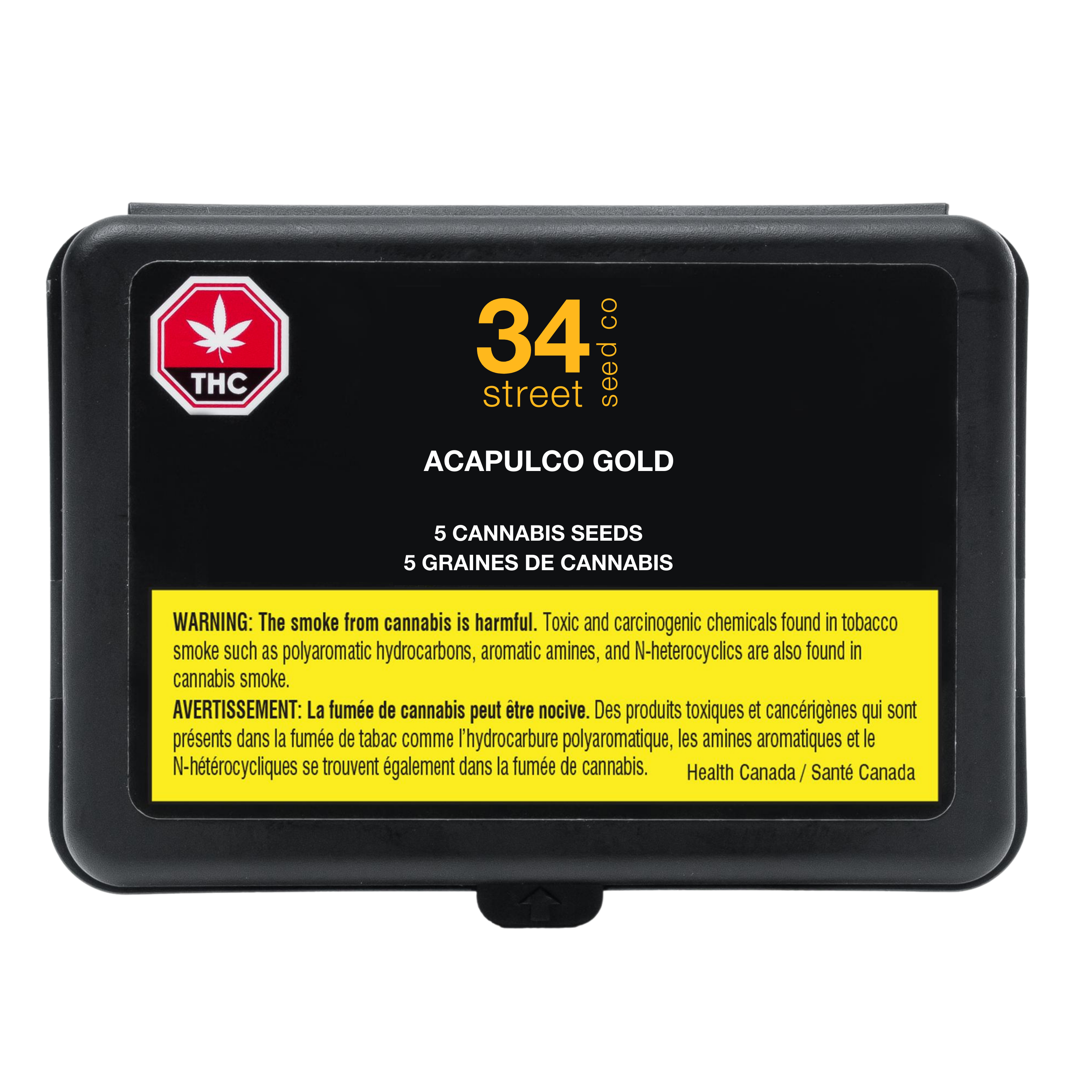 The legendary strain Acapulco Gold is finally here! This Sativa dominate hybrid creates a energizing experience that hits at a perfect level. This cultivar is well known for its beautiful orange hairs and nice large buds that can resemble golden nuggets. With aromas that have earthy, sweet, and woodsy hints, it will fill your grow tent with joy and accompanied by a taste that is unmistakable. Acapulco Gold is great for indoor and outdoor grows with a medium stretch and a flowering time of 9 to 10 weeks or harvest in mid to late October.